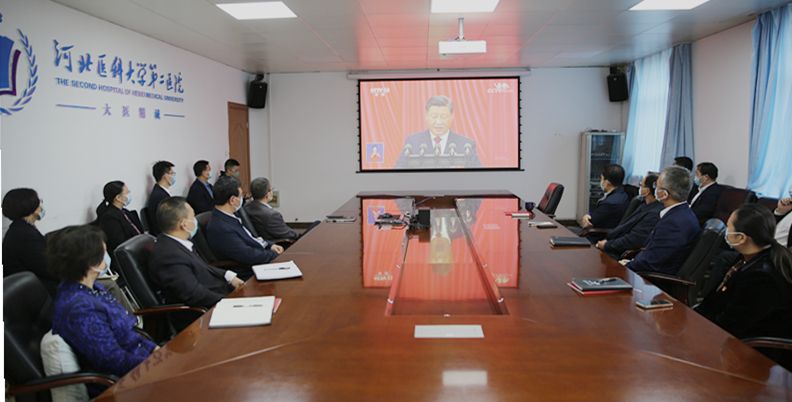 中国共产党第二十次全国代表大会10月16日上午在人民大会堂开幕。习近平代表第十九届中央委员会向党的二十大作报告。医院党委精心组织,全体院领导、党委委员,党总支书记,相关职能部门负责人在医院会议室集体观看党的二十大开幕会直播。在保证正常医疗秩序的同时,积极组织广大党员干部、职工、学生通过电视、网络媒体、移动终端等多种渠道集中观看,认真聆听习近平总书记报告。
