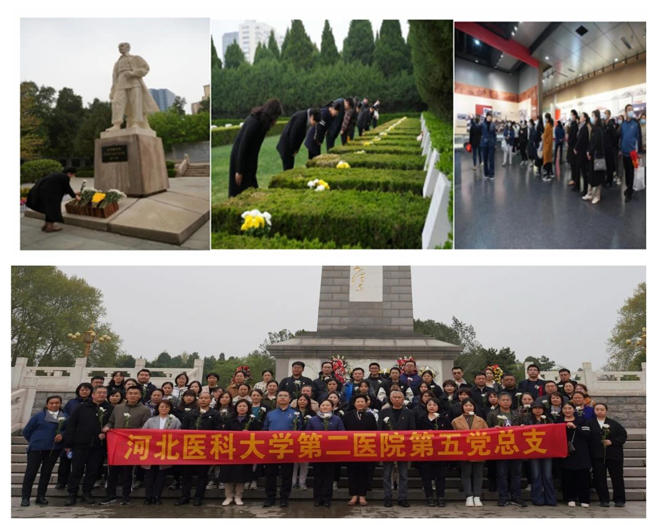 4月4日,在清明来临之际,第七党总支第四党支部组织支部党员、入党积极分子,到华北军区烈士陵园参加公祭革命烈士大会,敬献鲜花,瞻仰英雄,缅怀烈士。在参观了华北革命战争纪念馆、白求恩、印度援华医疗队纪念馆后,同志们纷纷表示,英雄烈士是民族的脊梁、时代的先锋,英烈事迹和精神是中华民族的共同历史记忆和宝贵精神财富,我们每一位党员都应该铭记在心,向英烈学习。