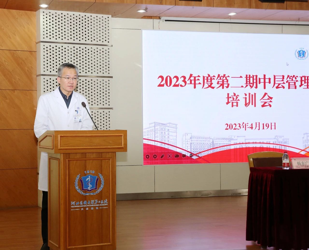 培训会邀请中共河北省委党校党建部主任、法学博士杨东广教授开展讲座,杨教授授课内容脉络清晰、系统全面,以《全面建设社会主义现代化国家的纲领性文献——党的二十大精神解读》为题,从党的二十大召开盛况到重温十九大、学习二十大,从对学习党的二十大精神的“金钥匙”五个牢牢把握的精彩阐释到围绕全面建设社会主义现代化国家的特殊背景、重要基础、指导思想、理论支撑、战略布局和领导力量等方面进行了系统、深入的解读,对全体党员、干部准确把握习近平新时代中国特色社会主义思想和党的二十大精神以及在新的起点上推动医院高质量发展具有很强的指导意义。
