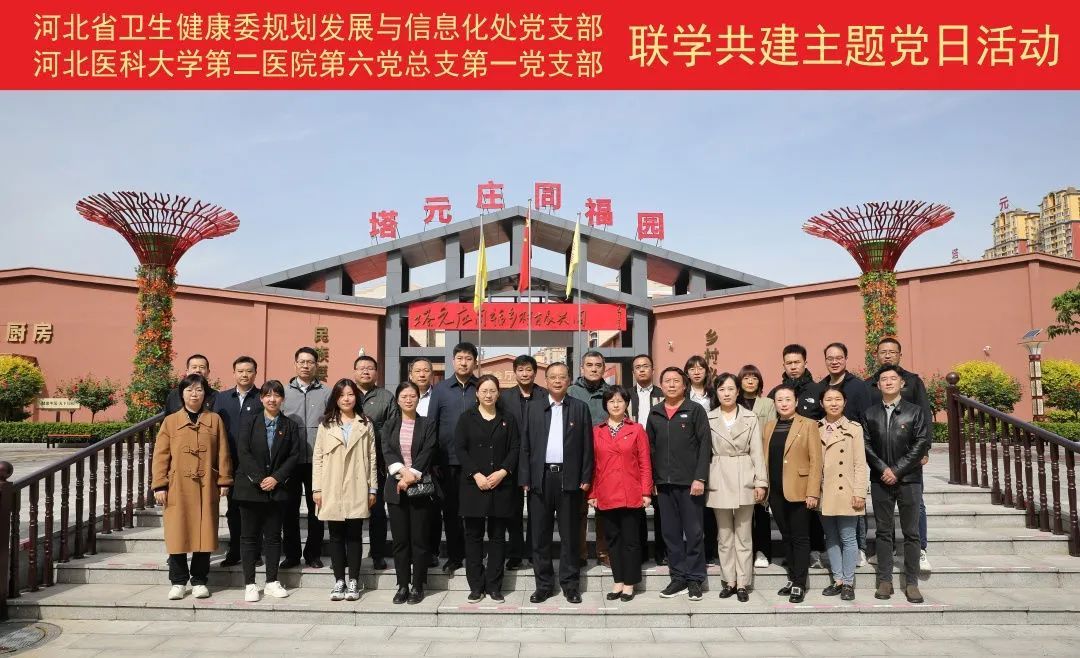 为扎实开展学习贯彻习近平新时代中国特色社会主义思想主题教育,深入学习贯彻党的二十大精神,4月28日上午,我院第六党总支第一党支部与省卫生健康委规划发展与信息化处党支部一同到正定塔元庄和我院正定新区医院建设项目开展以“党建引领 携手共建”为主题的党支部联学共建活动。