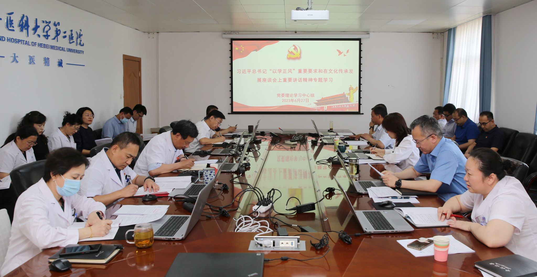 6月27日,医院党委召开理论学习中心组会议,专题学习了习近平总书记在文化传承发展座谈会上重要讲话精神和“以学正风”重要要求。全体院领导、党委委员,纪委、组织部、宣传部、院办室相关负责同志与党总支书记参加学习。