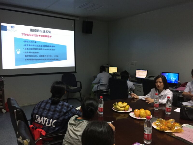 第二天,裴华颖教授和王莉华教授分别就腹膜透析在终末期肾衰患者中的临床应用和血液透析患者血管通路的维护进行了授课,并带领大家参观了腹膜透析中心和血液透析中心,并与大家积极互动。