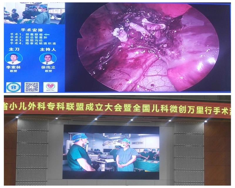 随后,小儿外科主任李索林教授进行了微创手术演示,分享包括腹腔镜胆总管囊肿切除术、胸腔镜肺囊肿腺瘤切除术、腹腔镜腹股沟斜疝内环结扎术、腹腔镜睾丸引降固定术等多种手术技术,业界专家与同行通过微创万里行直播平台进行现场实时观摩与学习,在线观看人数总计高达4万余人,受到全国小儿外科同仁的一致好评。