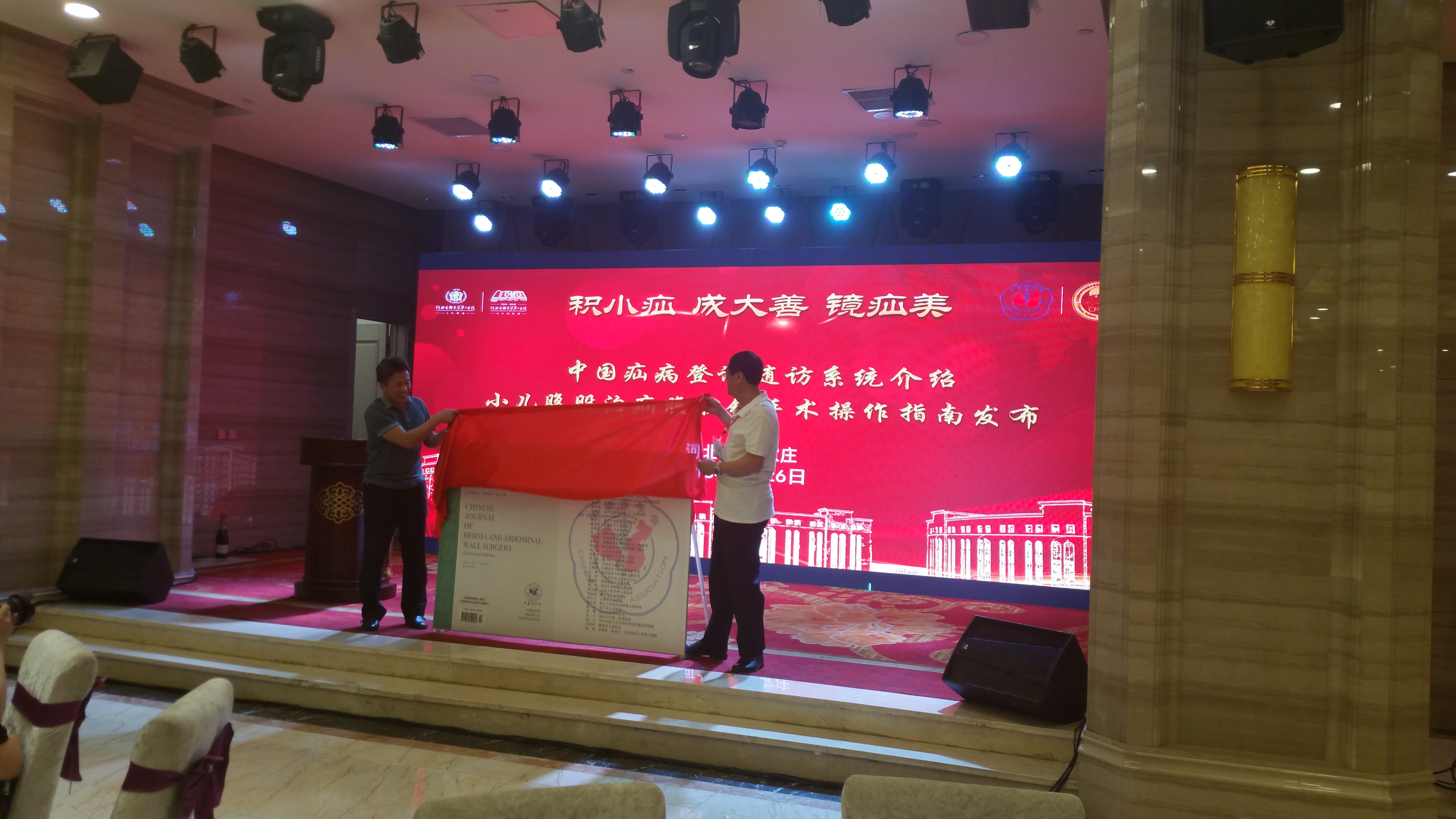 5月26日晚举办了小儿腹股沟疝腹腔镜手术操作指南的盛大发布会。陈杰教授介绍中国疝病登记随访系统方法、意义与应用,我院李索林教授对小儿腹股沟疝腹腔镜手术操作指南进行精准详尽的解读,指出该指南规范小儿腹股沟疝等小儿鞘状突未闭相关疾病的微创诊治技术,普及和推广了隐瘢痕微创手术在小儿疝和腹壁外科疾病中的应用。***后由***都儿科研究所李龙教授与李索林教授对《小儿腹股沟疝腹腔镜手术操作指南》进行揭牌仪式,参与该指南编写的所有专家成员均到会祝贺。