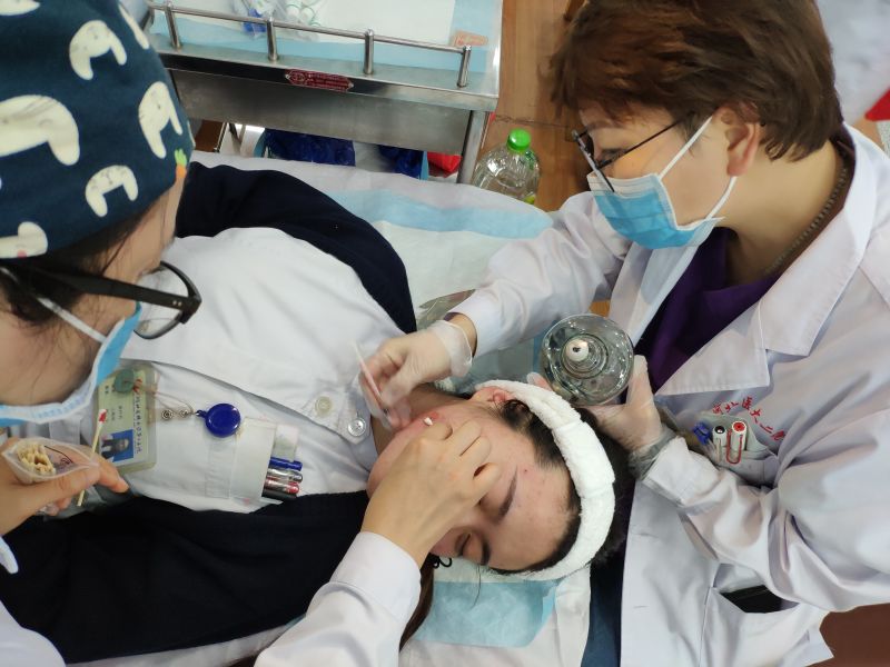 为了让大家更直观感受到皮肤专业护理的效果,皮肤科精心组织人员现场进行了果酸焕肤、水杨酸治疗以及面部湿敷的治疗体验,现场反响强烈,护士姐妹们积极参与其中。“虽然每天做着自己专业的护理工作,但接受我们医院专业的皮肤护理项目还是头一次,这种活动让我们感觉特别温暖、开心。”几位参加培训的护理姐妹高兴的说。