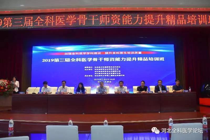 2019年5月24日,由河北省医学会全科医学分会、河北省医师协会全科医师分会河北省卒中协会全科医学分会主办,河北医科大学第二医院全科医疗科承办,以“加强全科医学学科建设,提升全科医生培训质量”为主题的“2019第三届全科医学骨干师资能力提升精品培训班”在石家庄中山宾馆拉开帷幕,中华医学会全科医学分会主任委员、中国医科大学副校长于晓松,中华医学会全科医学分会信息组组长耿俊强,上海医师协会全科医师分会会长、同济大学附属杨浦医院院长于德华,内蒙古自治区医学会全科分会主任委员、包头医学院继续教育学院院长刘铮然,河北医科大学副校长武宇明、河北省卫生健康委员会科教国际合作处处长周志山、河北省医学会王振显秘书长、河北医科大学第二医院党委书记张万生出席会议开幕式。全省各5+3住培基地和3+2助理全科基地负责人、全科医学骨干师资200余人参加了会议。