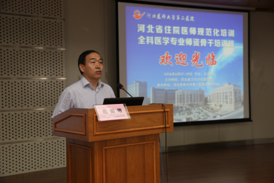 2016年6月17-19日,由河北省卫生计生委员会主办、我院全科医疗科承办的“河北省住院医师规范化培训全科医学专业师资骨干培训班”在我院图书馆三楼胜利召开。范振增副院长代表我院致欢迎辞,省卫计委科教处尤殿平处长做了重要讲话。省内35家三级医院近500人参加了本次培训。
