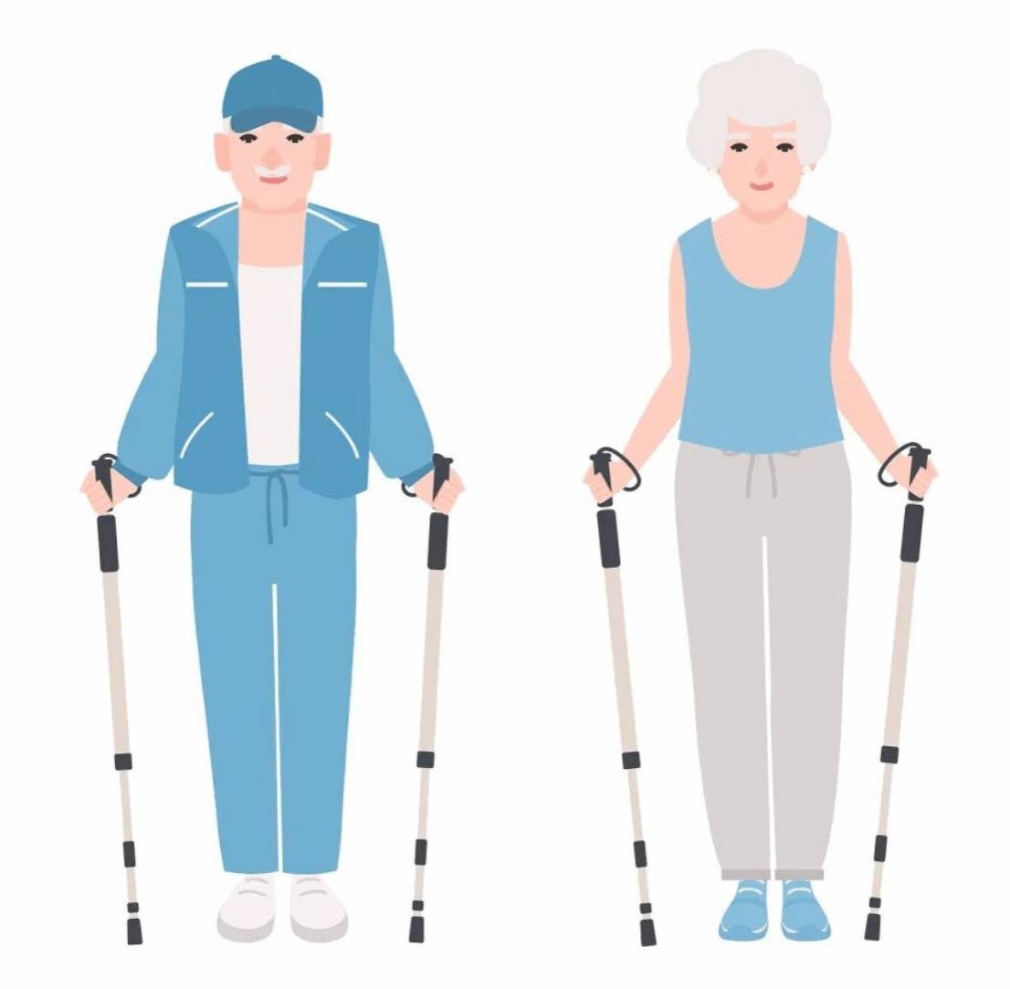 可使用手杖、助行器等协助活动。