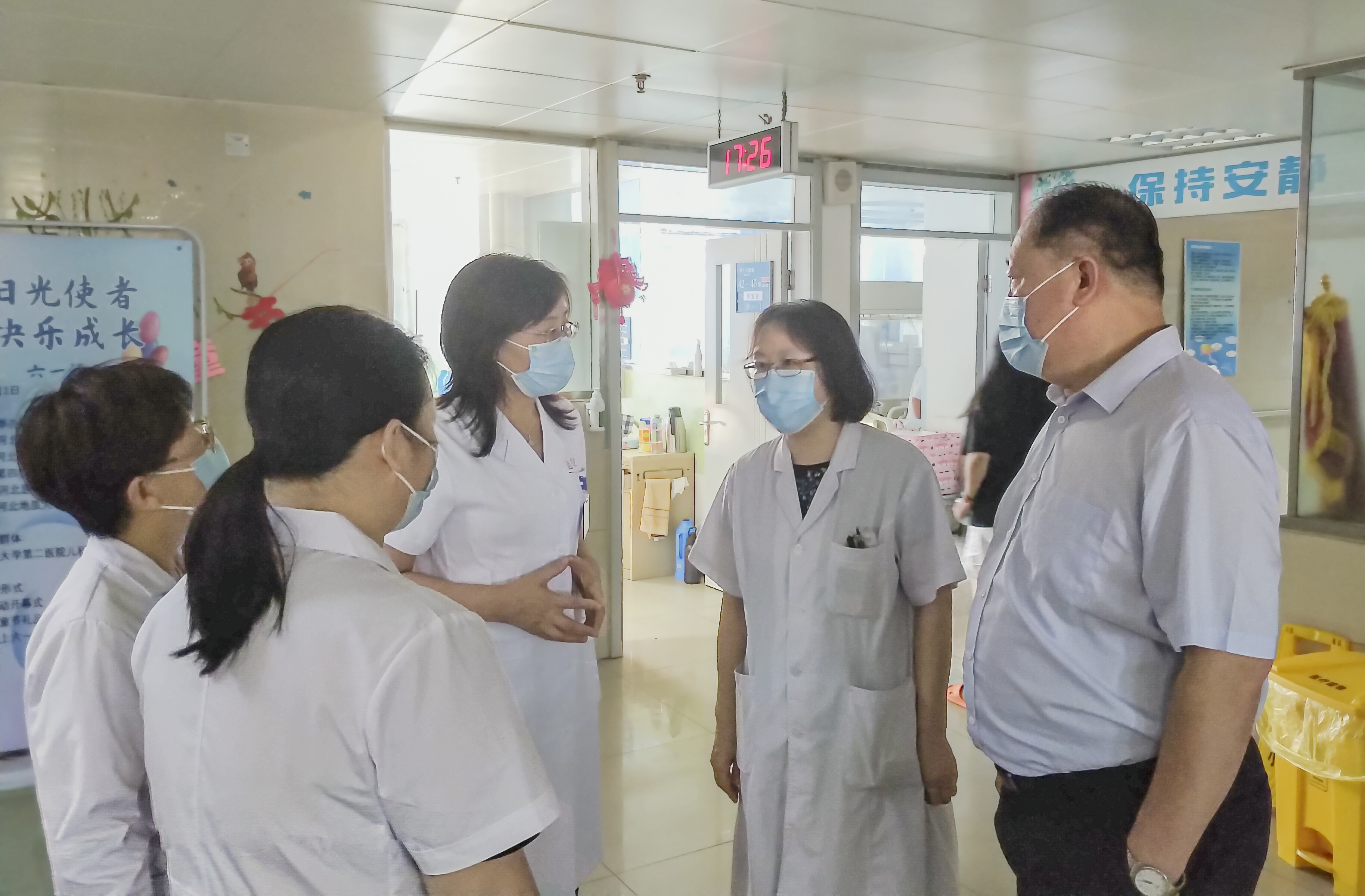 王贵英书记一行赴北院区实地调研 关键字:调研 7月18日下午,王贵英书记、时保军院长、阎雪副院长一行赴北院区住院楼16楼小儿内科病区实地调研。...