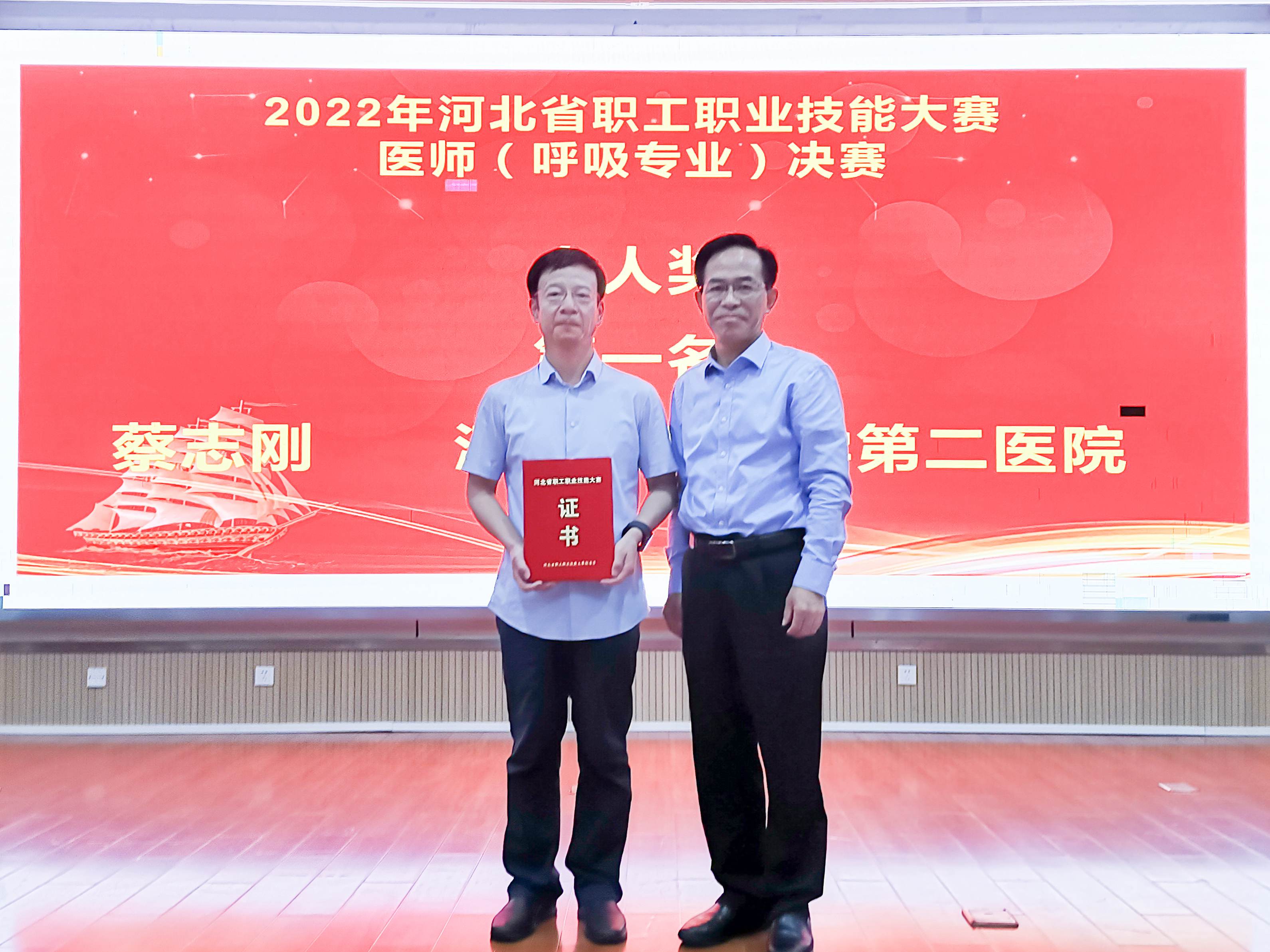 蔡志刚教授荣获2022年河北省职工职业技能大赛医师(呼吸专业)决赛个人奖第一名 关键字:职业技能大赛 2022年8月10日,由河北省总工会、河北省卫生健康委员会等九部门联合...