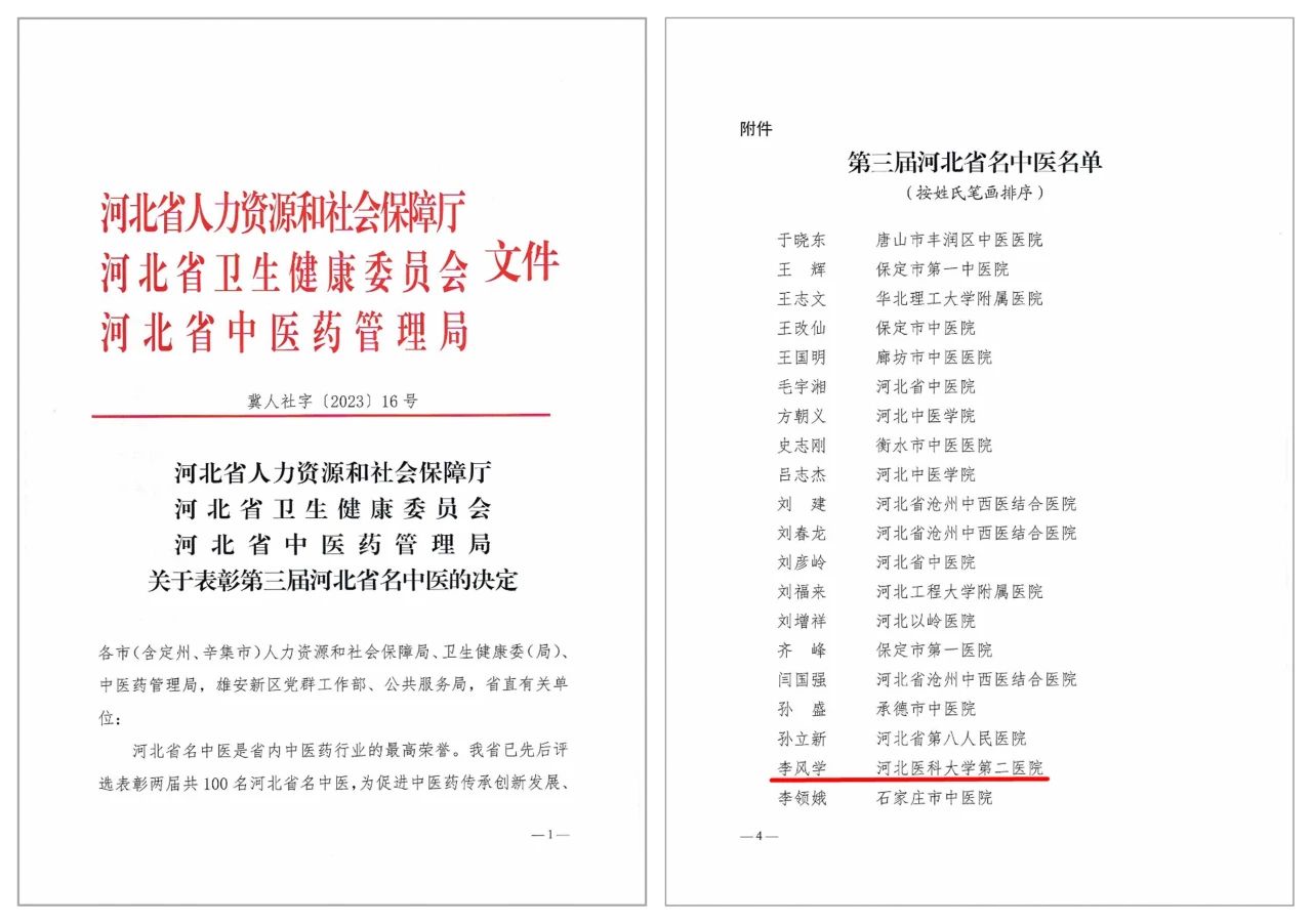 日前,省人力资源和社会保障厅、省卫生健康委员会、省中医药管理局联合公布了第三届河北省名中医名单,我院中西医结合内科李风学教授入选。 河北省名中医是省内中医药行业的最高荣誉。经...