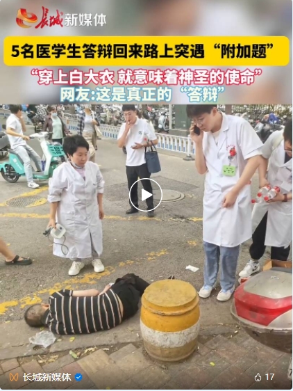 近日,我院5位住陪医师的街头救人之举引发了媒体的广泛关注。 一位中年男性突然晕倒在路边。紧要关头,正巧路过此处的我院住培医师王文磊、于灏天、王亚浩、陈方正、毕愿博同学挺身而出,紧急救治,并护送到医院急诊...