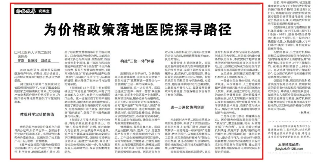 近日,《健康报》以《为价格政策落地医院探寻路径》为题,对我院构建覆盖全院的国家医疗服务价格项目立项指南执行体系进行了报道。 为价格政策落地医院探寻路径 2024年底至今...