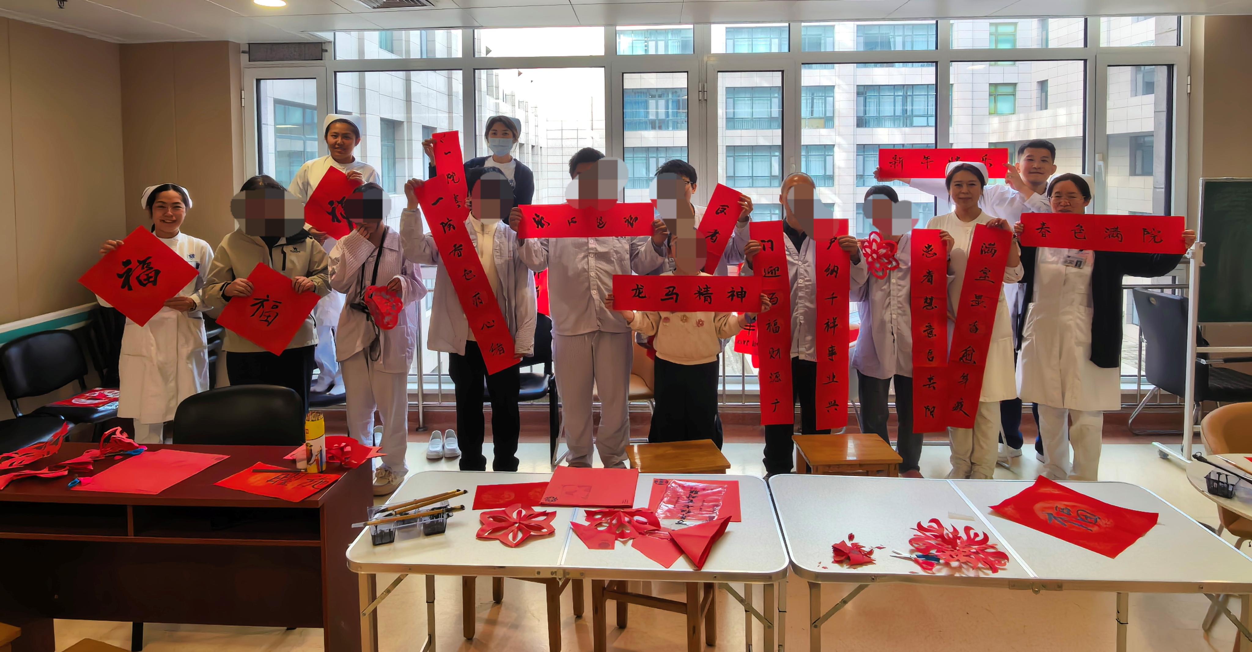 春节将至,我院心身医学科举办了一场别具一格的团体精神康复治疗活动——患者自己动手写福字、写春联、剪窗花、装扮病区。 科室将治疗策略从被动应对转为主动干预,把节日元素转化为治疗资源。在“心灵工坊”,红纸...