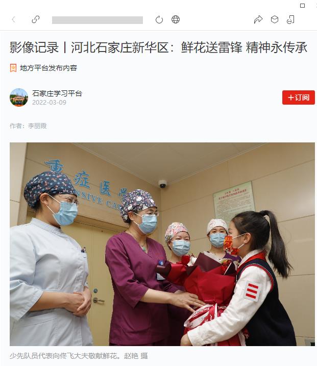 《学习强国》报道“鲜花送雷锋”活动西苑小学生向我院佟飞教授献花致谢 关键字:学习强国 “鲜花送雷锋” 佟飞 3月4日下午,石家庄市西苑小学的少...