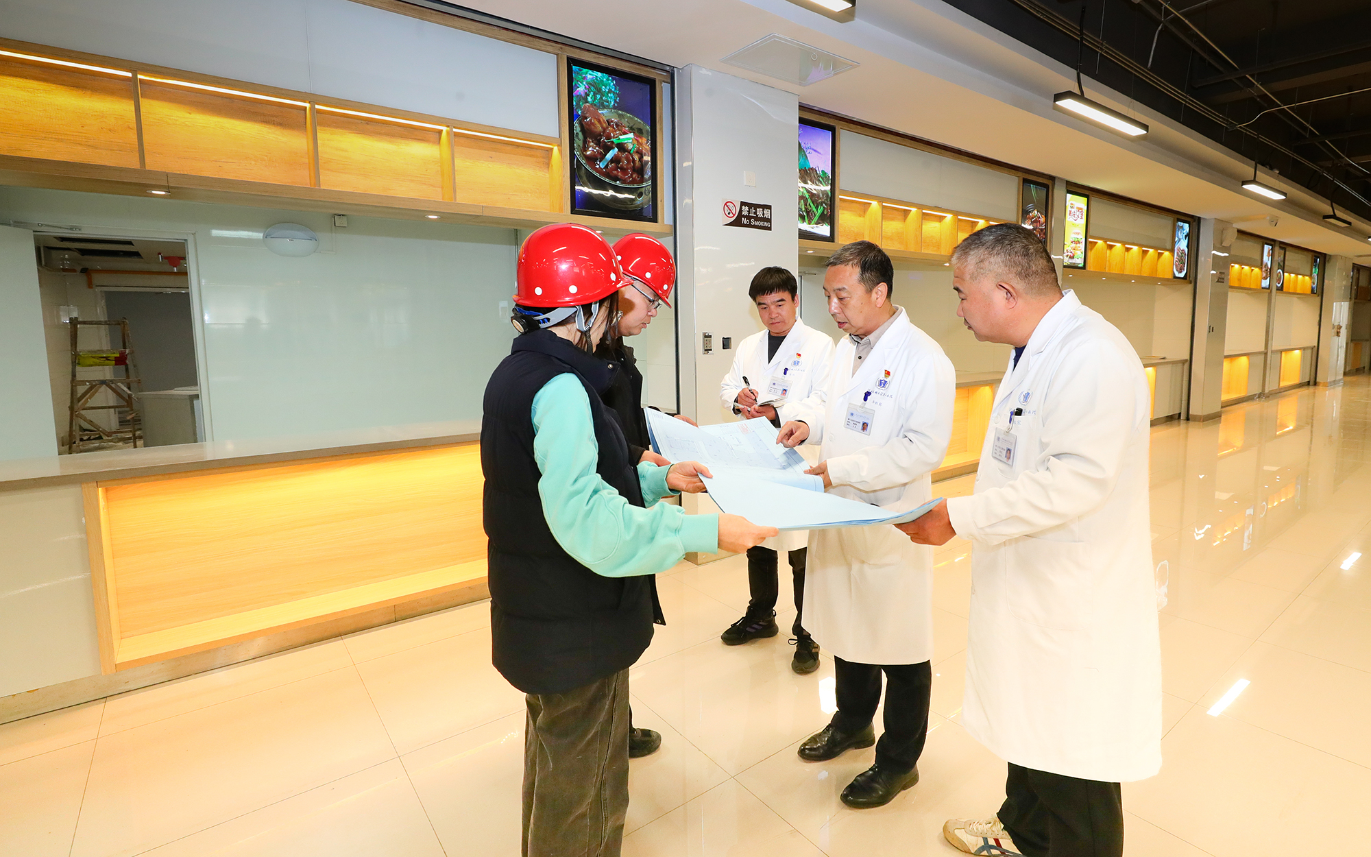 后勤保障部现场查看鹿泉食堂