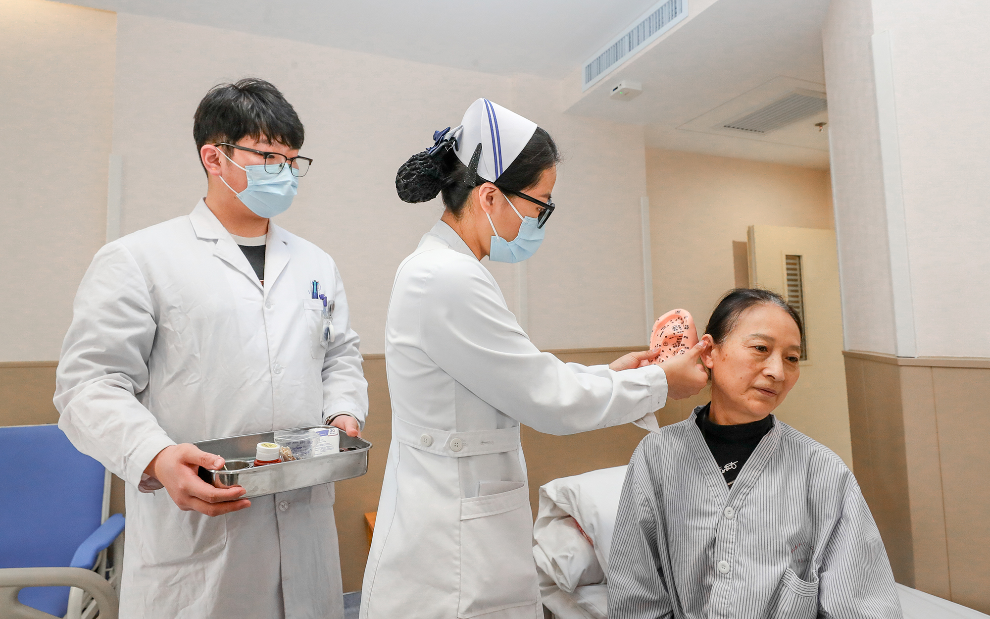 心身医学科进行贴耳治疗